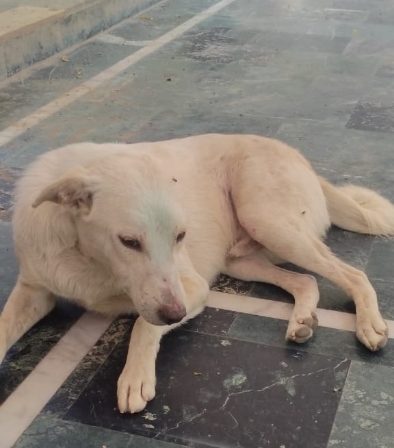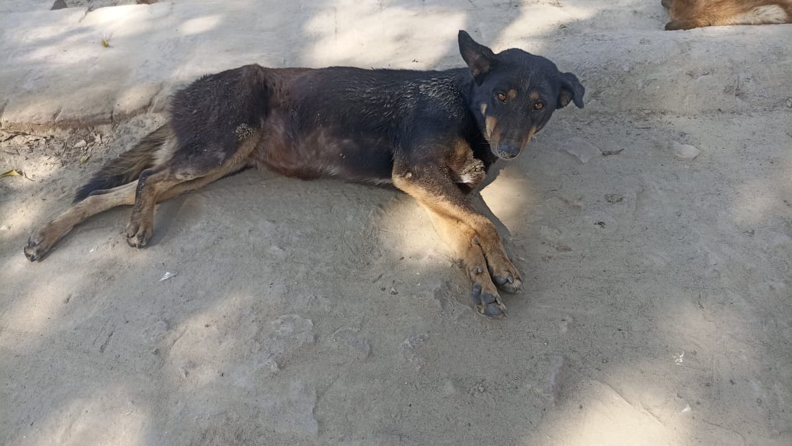 Bhola came to us with a maggot wound in his ear. Maggots had eaten his ear and the flesh around it. That's why you see him with a missing ear. As is the case with all maggot wounds, his recovery took quite some time. He is a very calm and gentle dog and that's why we named him BHOLA, meaning simple minded. He now stays with us at the shelter