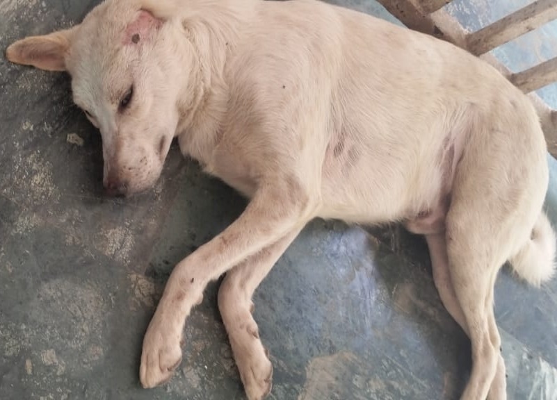 Debra had fallen into a drum of Tar. Luckily someone saw her falling and rushed to her aid. She was pulled out of the drum and was admitted to our hospital. With all this tar on her, our staff had to act fast. Tar was solidifying, uncasing her in it. It was fully stuck to her body. Just removing the tar was a big challenge. It took hours of work and to completely remove the tar, it took almost a week. Her skin was raw and she had stopped eating. First 3 days she didn't eat anything and was kept on drips, was given antibiotics and other supportive treatments. For her skin, silver nitrate cream was being applied to help her with the burning. Finally on the 4th day she started eating on her own. There was hope. Today her skin has fully healed and her blood report also came back normal. She is active also, and very friendly
