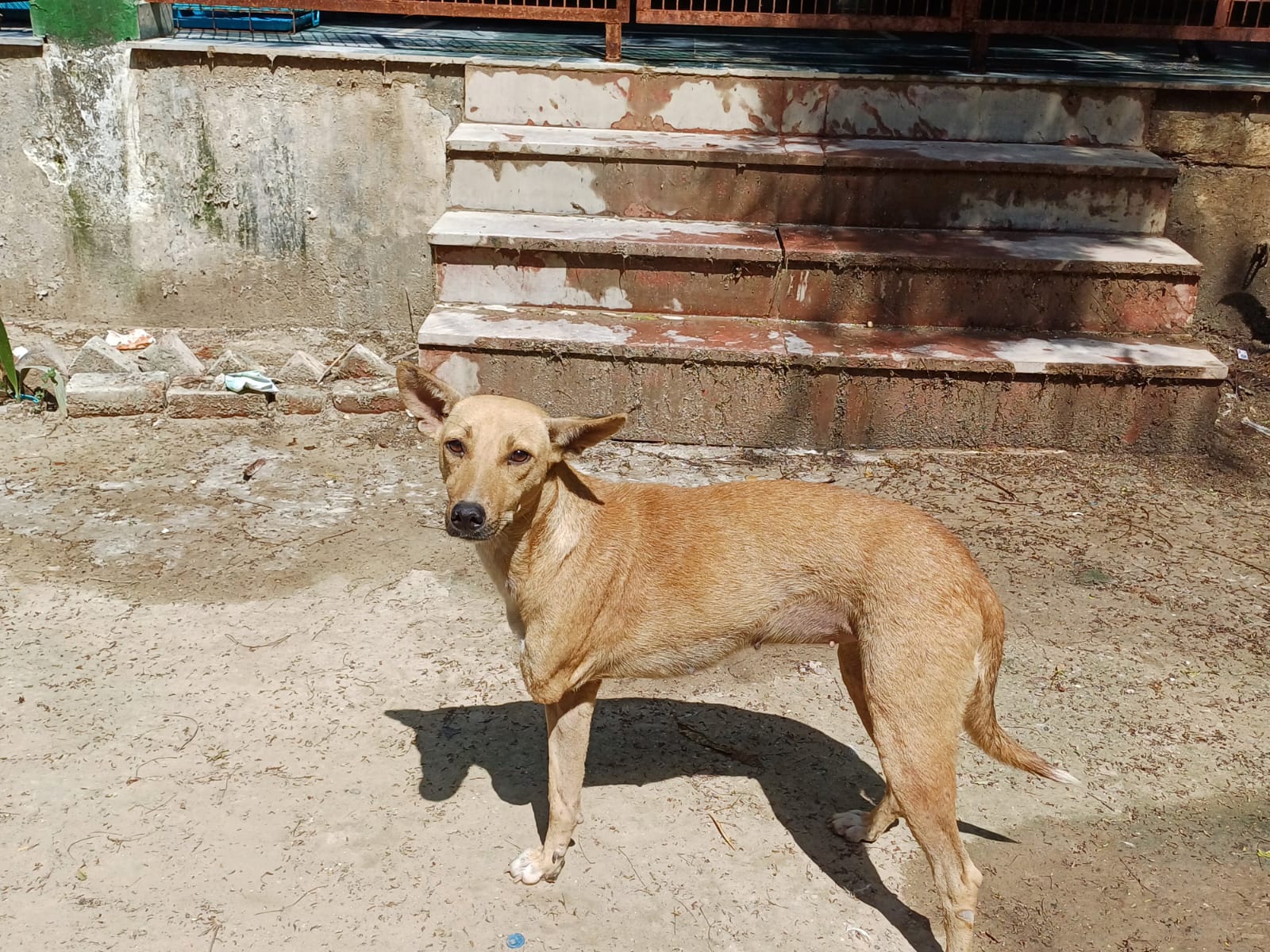 This is Julie. She came to us as a little puppy who was seriously injured. Her left leg was broken. She was lying in the Agra Cantt station and luckily people noticed her horrible situation and informed us. She came in October 2017. She has become a beautiful, lovely girl with long legs.