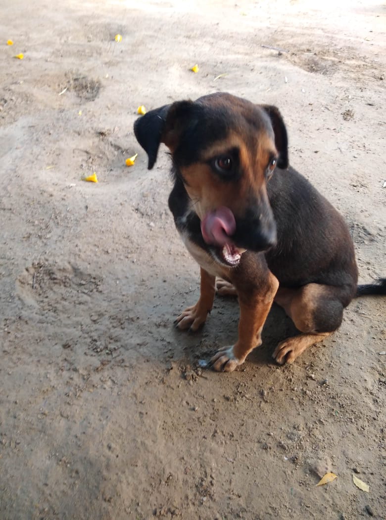 Toffee was an orphan puppy when he came to us. His mother had died and he had stopped eating. So someone brought him to the shelter. Gradually he started eating and is this shelter is his home now. He is a very friendly dog