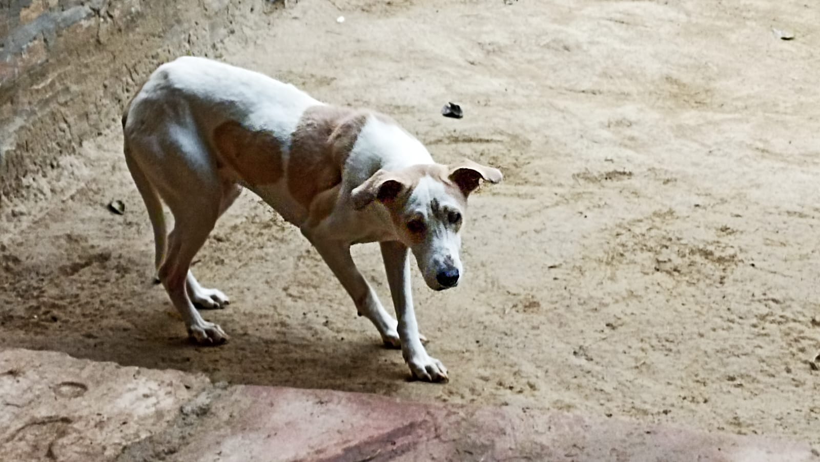Bhola came to us with a maggot wound in his ear. Maggots had eaten his ear and the flesh around it. That's why you see him with a missing ear. As is the case with all maggot wounds, his recovery took quite some time. He is a very calm and gentle dog and that's why we named him BHOLA, meaning simple minded. He now stays with us at the shelter